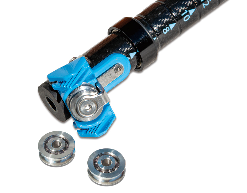 大型のボールベアリングプーリーで格段にダウンの引きを改善した。最新のカーボンプリプレグを使用。強度と軽さを追求しています。