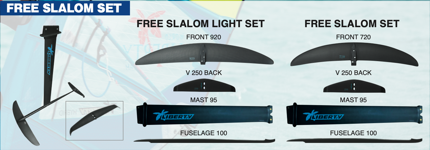 フォイル初心者からレーサーまで幅広く満足できる。V tailとのコンビネーションで安定感のあるリフトとジャイブコントロールに優れてたFREERACE FOILS。安定したセイリングとトップスピードが楽しめレースにも使用できるFreerace front wing。Freerceの上位モデルにあたるSLALOM FOILSなど、幅広いラインナップを用意。レース志向からビギナーまで、必ずマッチするセットが見つかります。